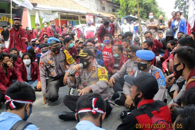 para mahasiswa memahami apa yang disampaikan Kapolres Kuningan dan aksi pun